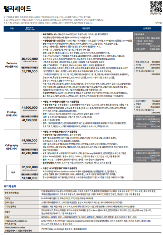 팰리세이드 상세 (팰리세이드 가격표 정리)