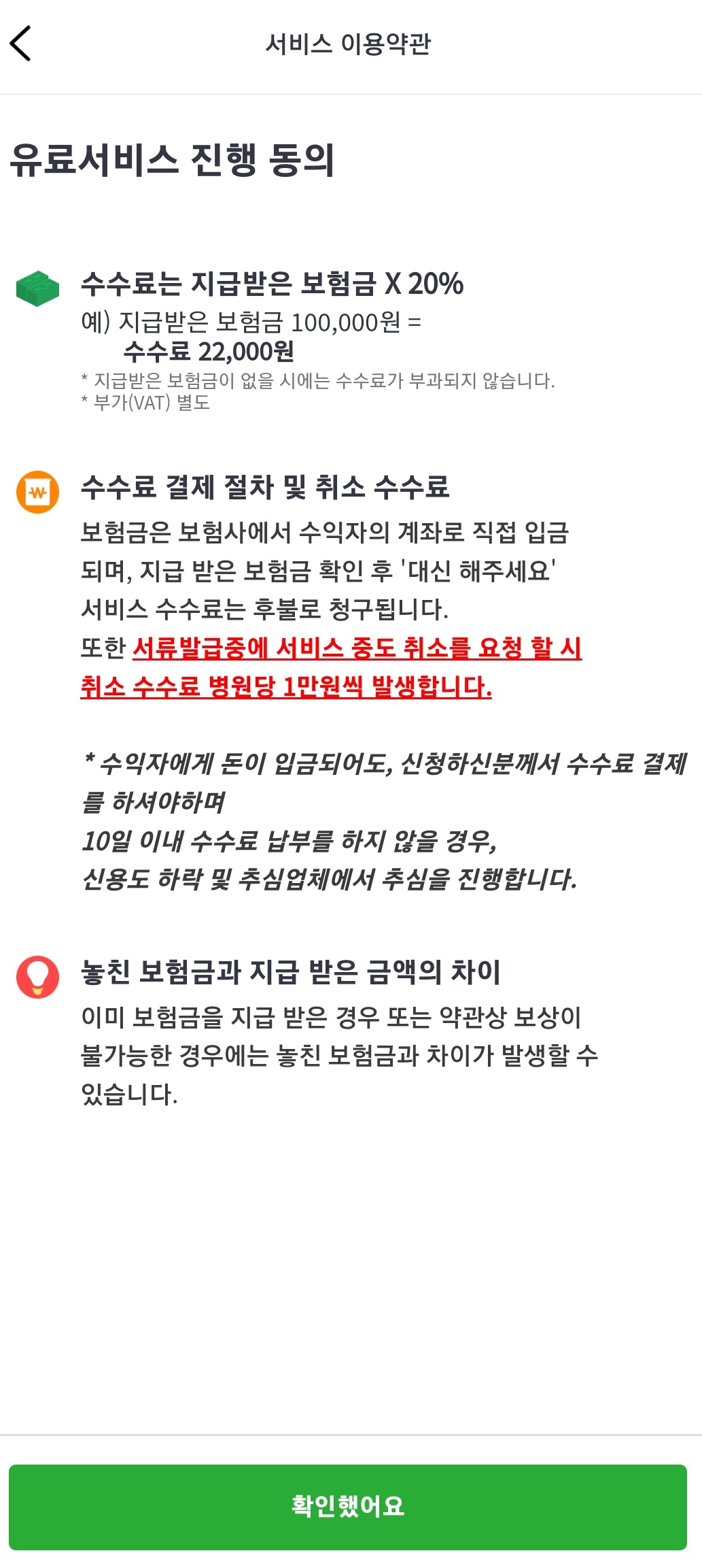 라이프캐치에 대행을 맡길 경우 22%의 수수료가 붙게 됩니다. 대행을 하지 않고 본인이 직접 서류를 보험사에 청구해도 전혀 상관없습니다.