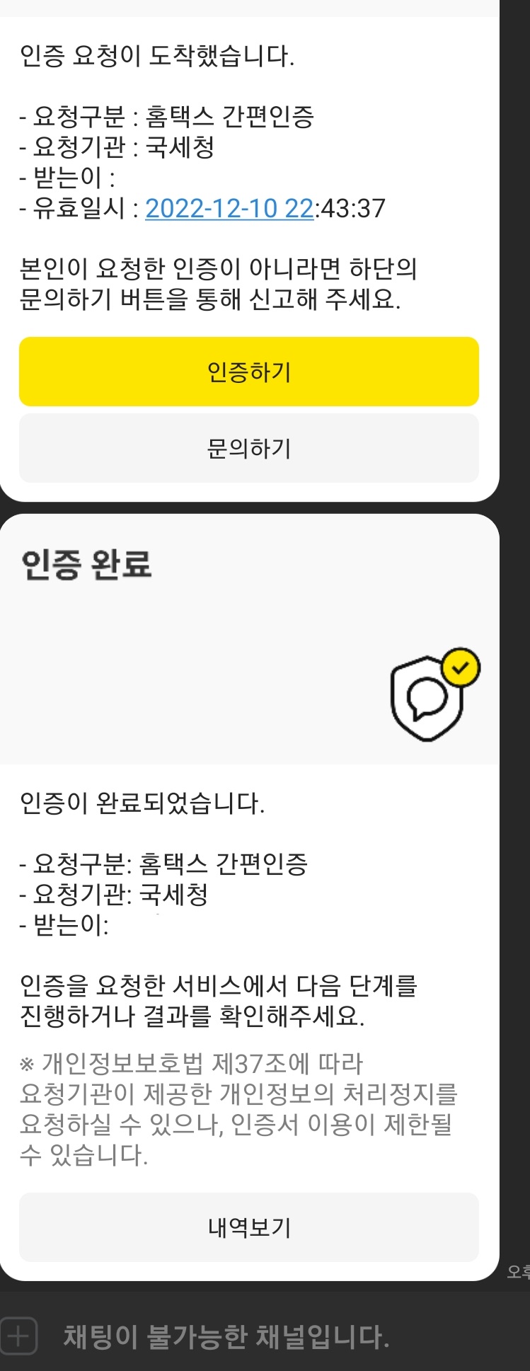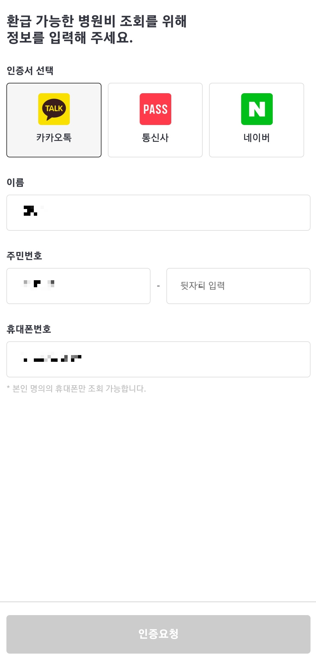저는 카카오톡으로 본인인증을 완료해주었습니다.