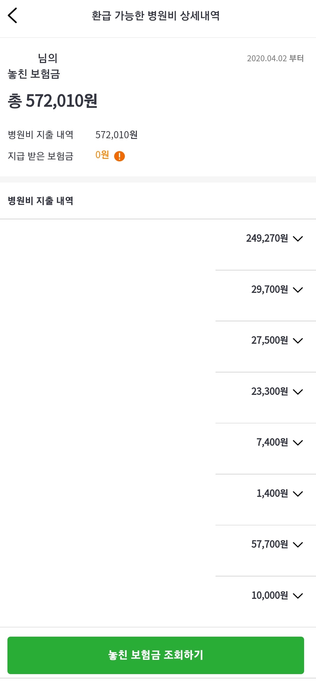 이렇게 되면 내가 실비보험을 청구할 수 있는 내역이 나오게 됩니다.