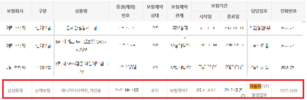 내가 가입한 보험 전부가 확인됩니다. 그중에서 자동차보험 가입 내역을 확인할수가 있습니다.