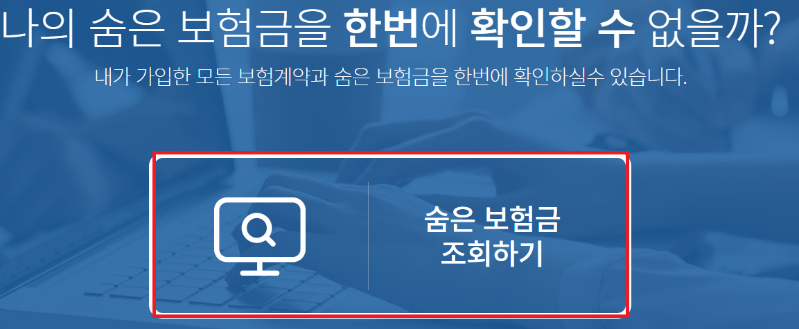 손해보험협회 홈페이지에 접속해줍니다. 숨은 보험금 조회하기 클릭해줍니다.