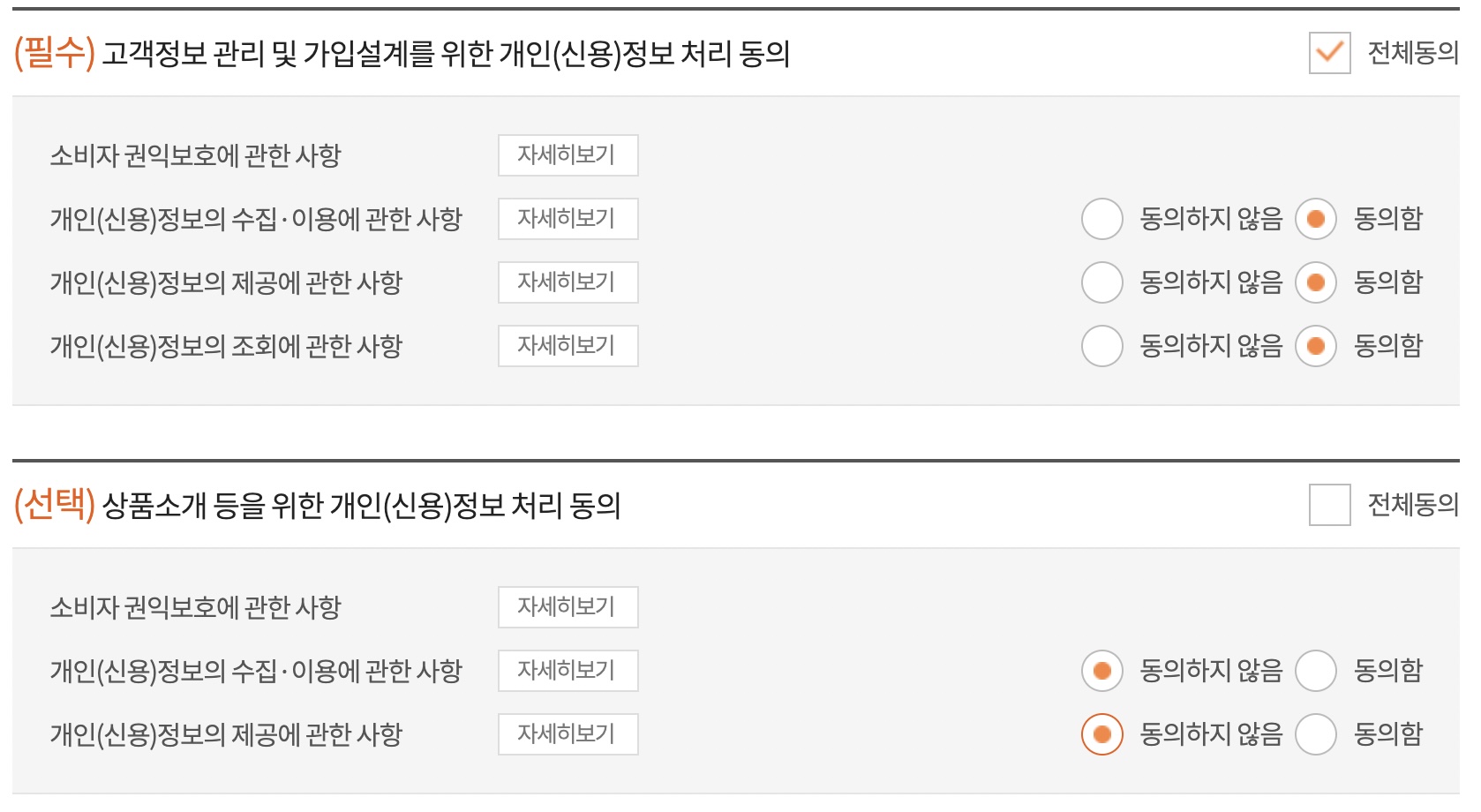 개인정보 입력 및 필수정보를 동의해주세요.