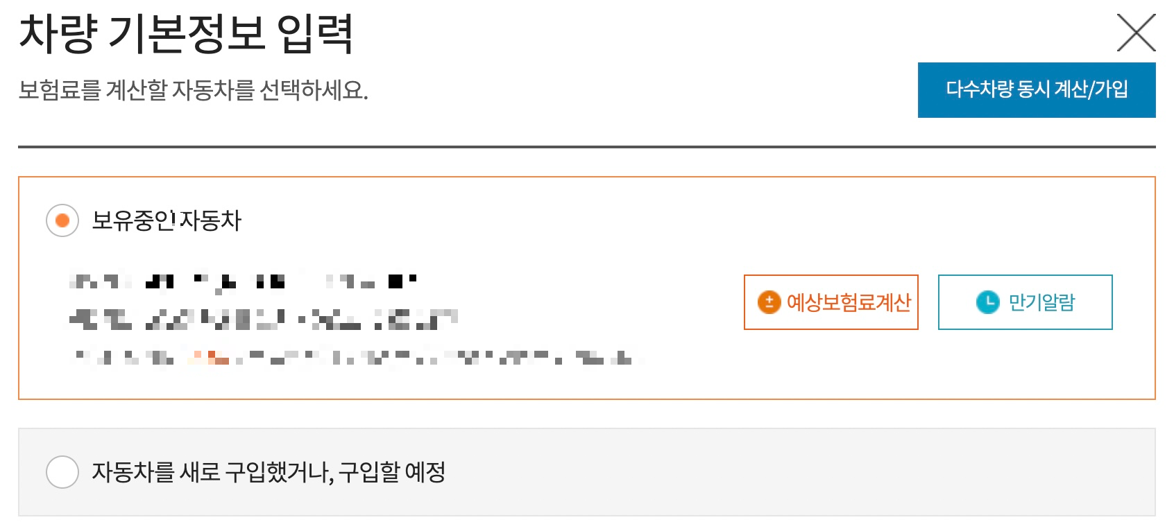 - 갱신하고자 하는 차량의 보험료를 계산합니다.