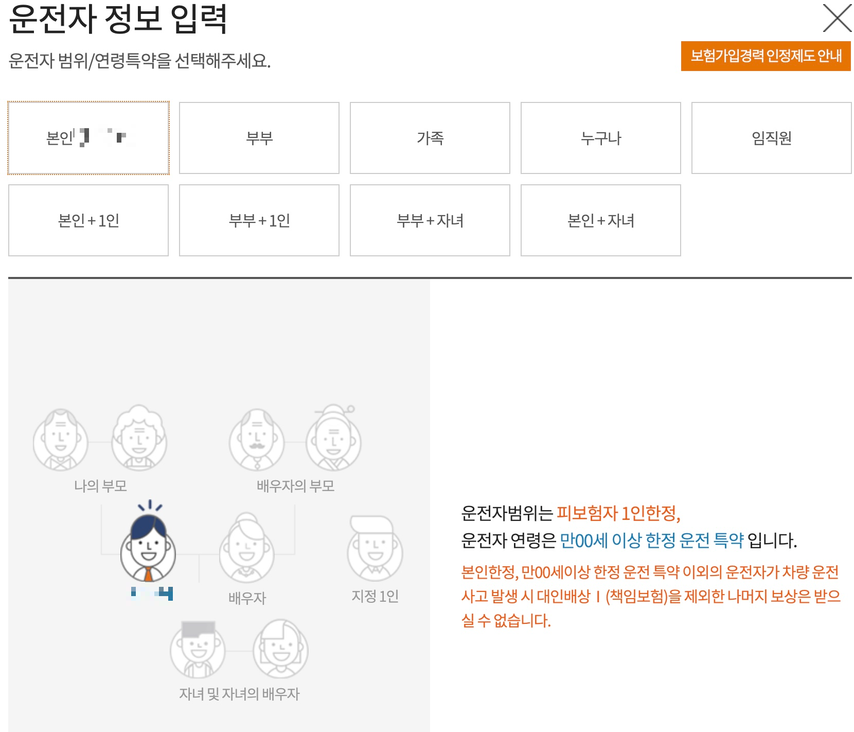 - 운전자 범위 조정: 가족 한정, 1인 한정 등