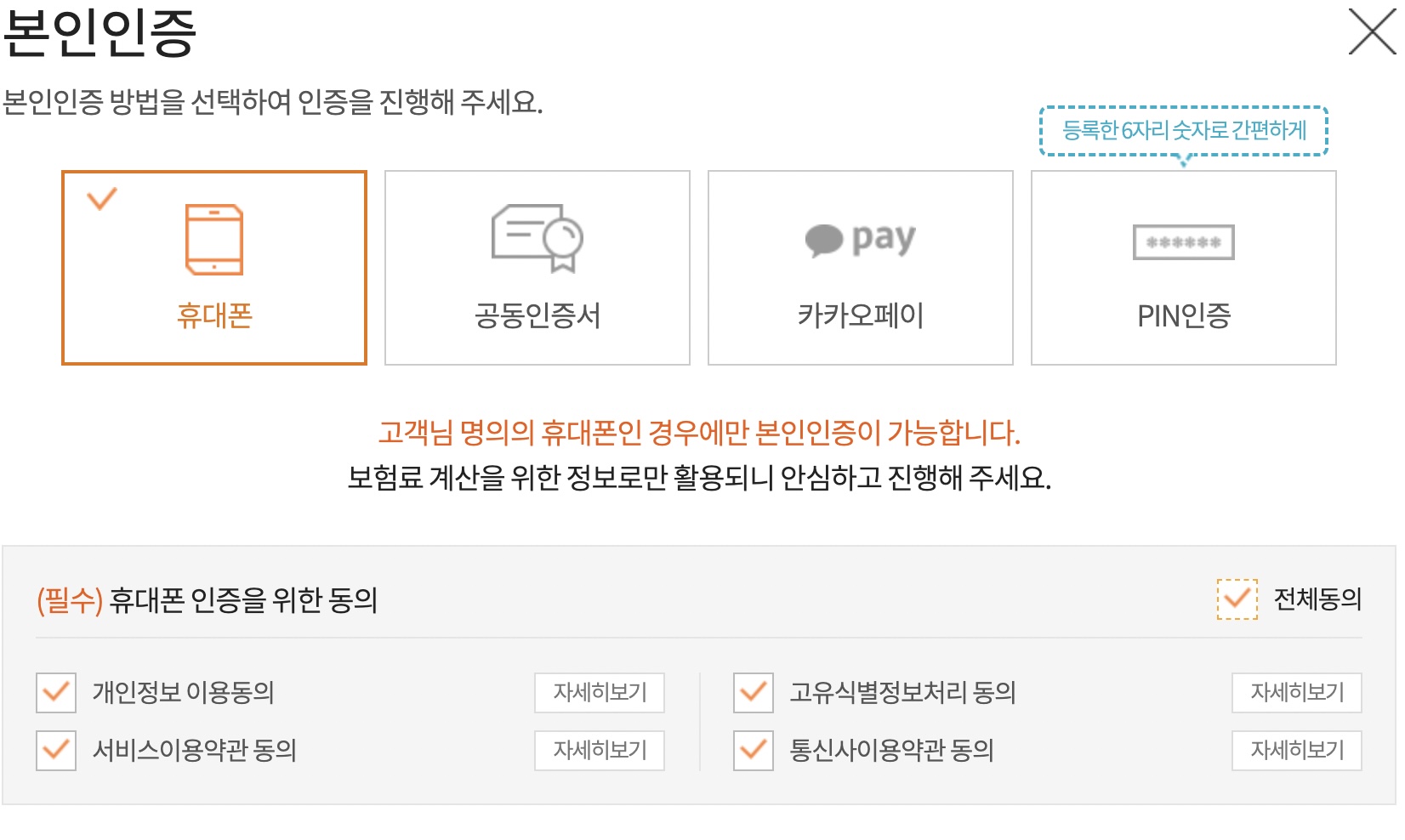 휴대폰 혹은 공동인증서를 통해 본인인증을 완료해주세요.