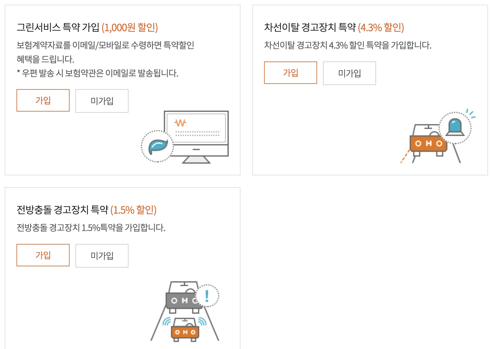 - 필요한 경우, 자동차보험 특약 새롭게 설정하거나 변경합니다.
