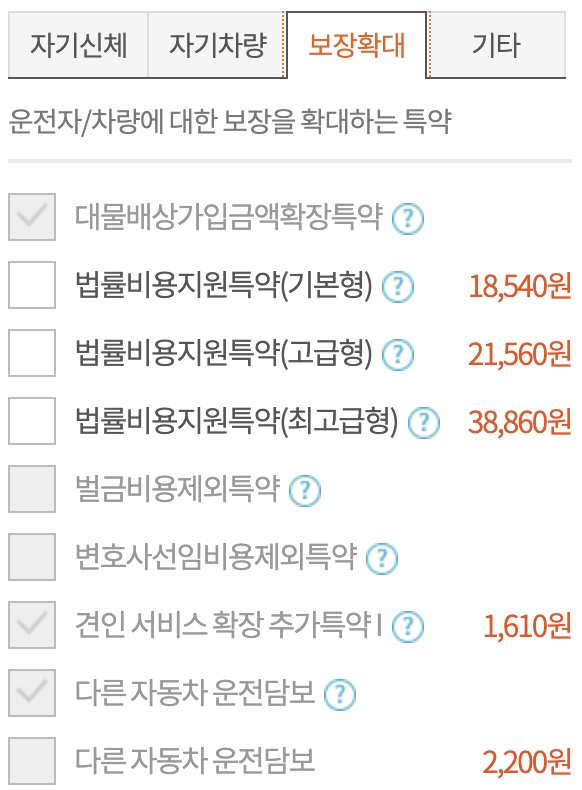 운전자보험 대신 자동차보험에서 특약으로 추가하려는데 어떤 항목을 추가해야하나요?