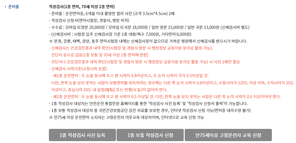 1종의 경우 적성검사 기간이라고 되어있지만, 2종의 경우에는 갱신 기간이라고 되어있습니다. 그 이유는 2종은 단순 갱신이기 때문에 새로운 사진만 있으면 갱신이 가능하지만, 1종의 경우에는 운전을 계속 할 수 있을지 신체검사를 통과할 경우 갱신이 가능합니다.