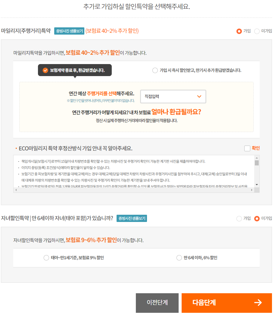 첨단 안전 장치가 장착된 차량에 대해 추가 할인을 제공하고, 블랙박스 설치 차량에도 할인이 적용됩니다. 어린 자녀가 있는 경우, 자녀 특약을 통해 보험료를 절약할 수 있으며, 다양한 운전자 범위 설정을 통해 납입료를 조절할 수 있습니다
