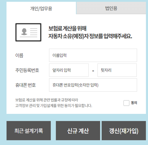 가입 조건이 변경되는 경우 또는 나이 및 차량에 따라 보험료가 달라질 수 있습니다.