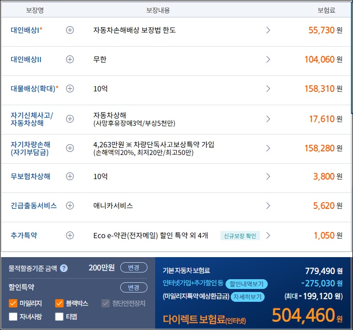 가입 조건이 변경되는 경우 또는 나이 및 차량에 따라 보험료가 달라질 수 있습니다.