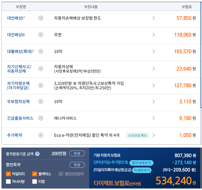 가입 조건이 변경되는 경우 또는 나이 및 차량에 따라 보험료가 달라질 수 있습니다.