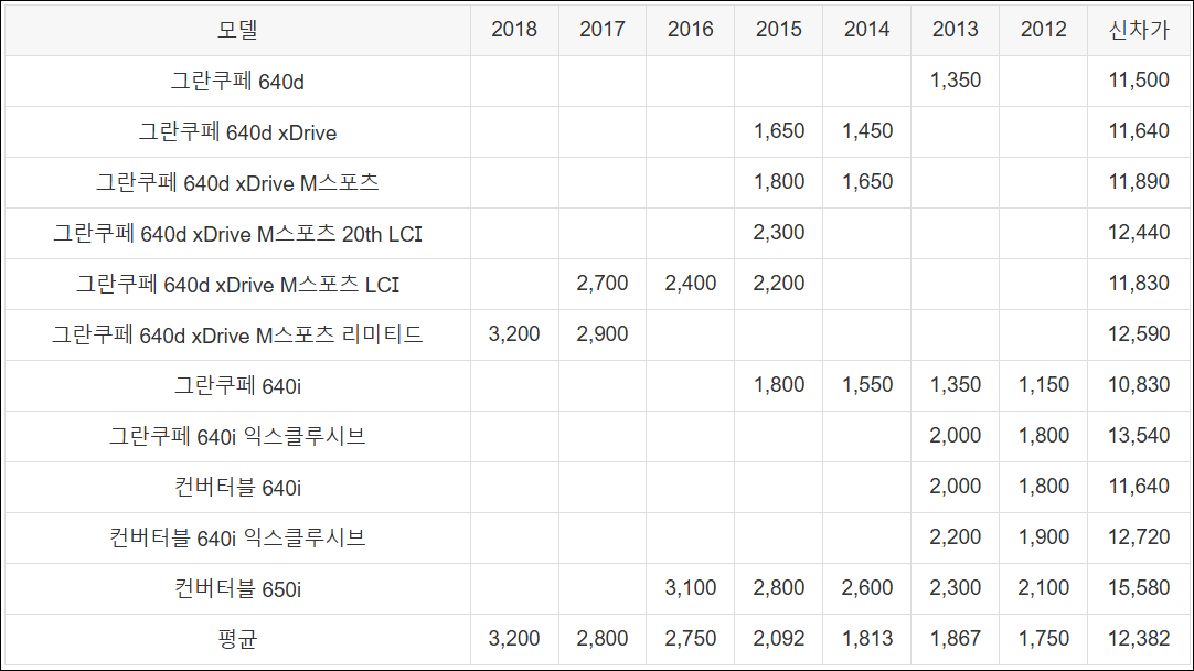 그란쿠페 640i | 1,800 | 1,550 | 1,350 | 1,150 | 10,830 | |||