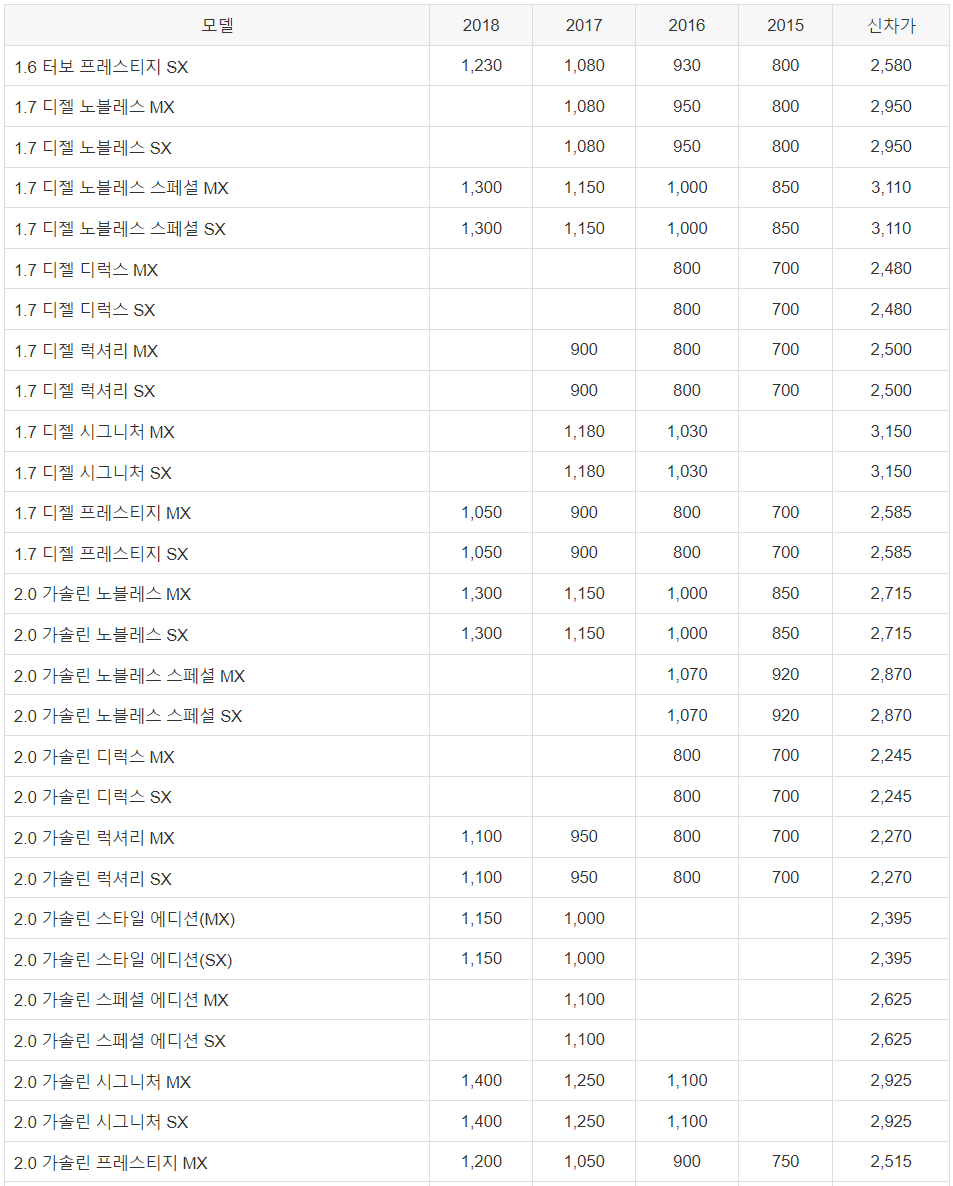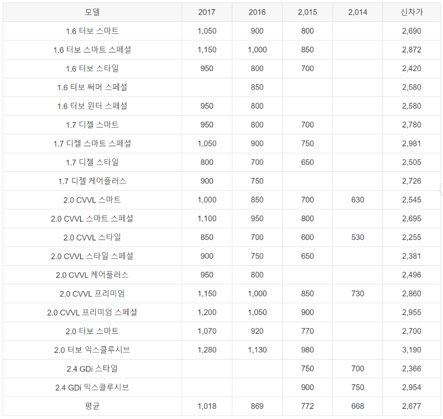 쏘나타 - 중고차 시세표