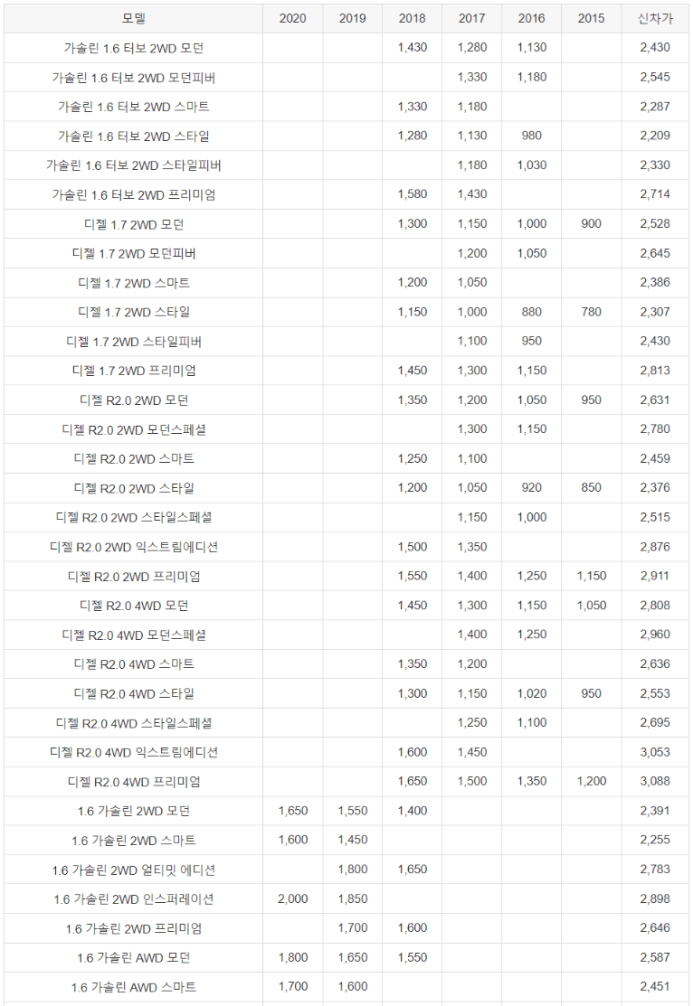 스파크 - 중고차 시세표