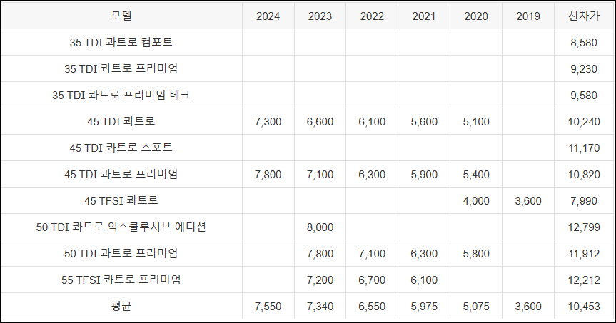 이상으로 아우디 Q7 중고차 가격 시세표 알아보았습니다. 작성일 기준으로 된 중고차 시세표입니다.