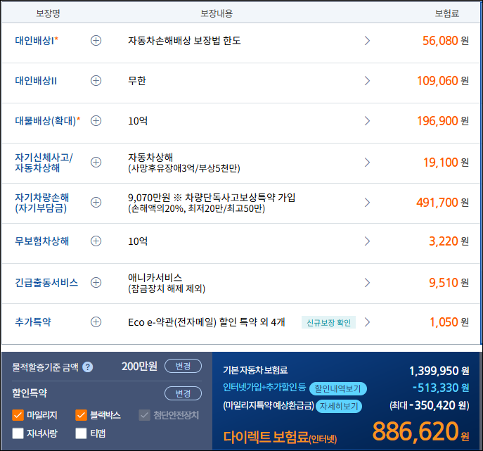 가입 조건이 변경되는 경우 또는 나이 및 차량에 따라 보험료가 달라질 수 있습니다.