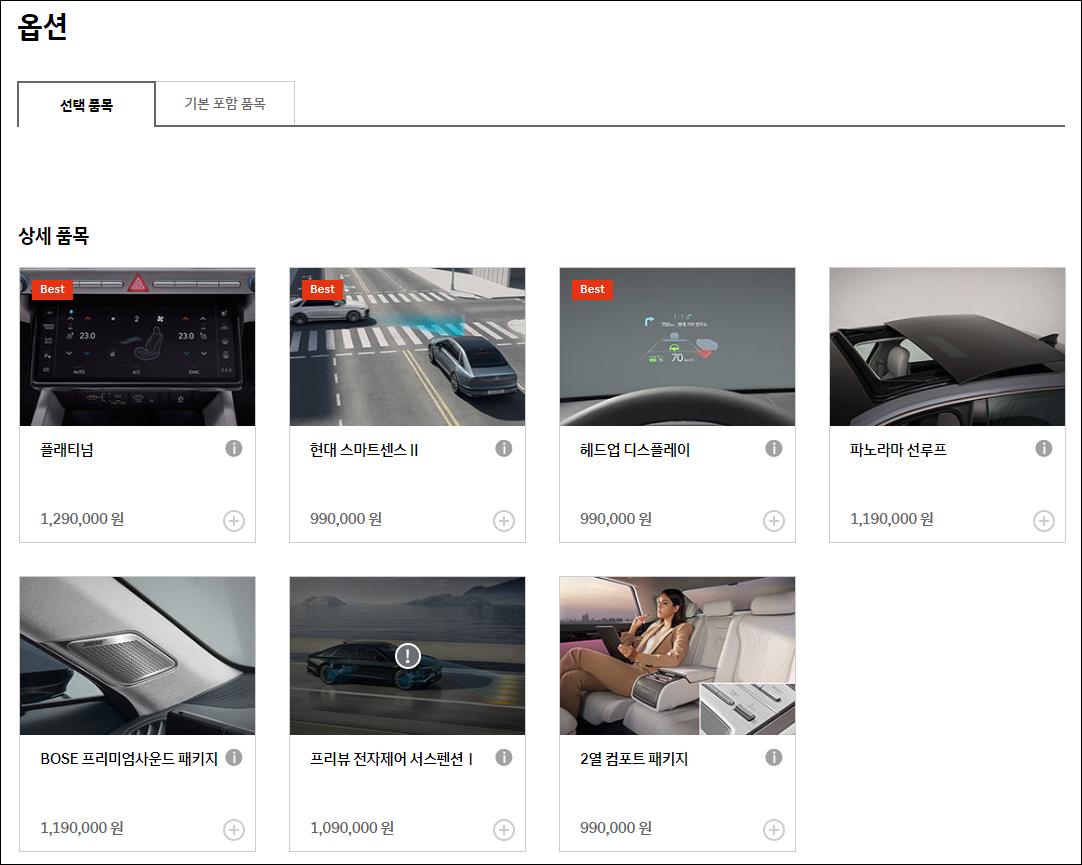 자동차의 컬러를 선택했다면 다음으로는 옵션을 선택해줍니다.