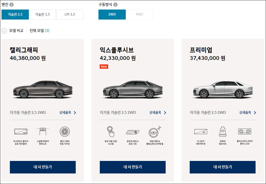 엔진과 구동방식을 선택해주고, 트림을 선택해줍니다.