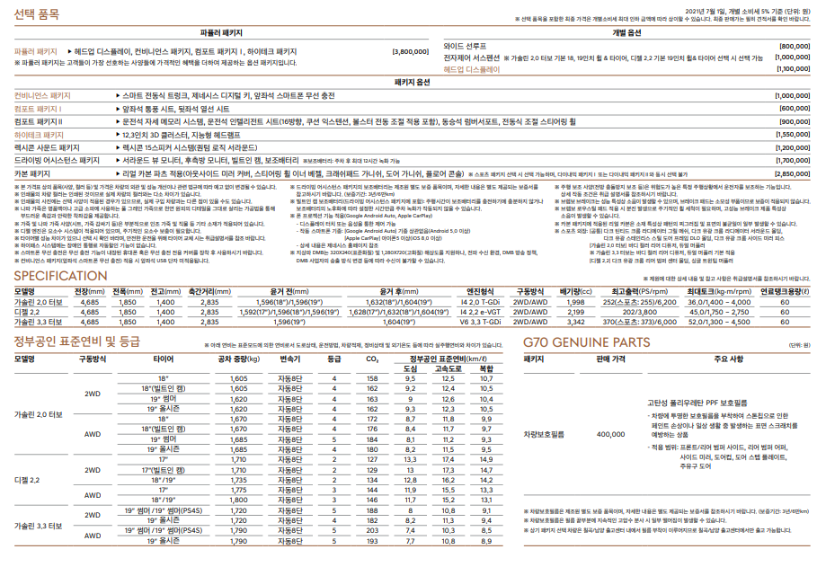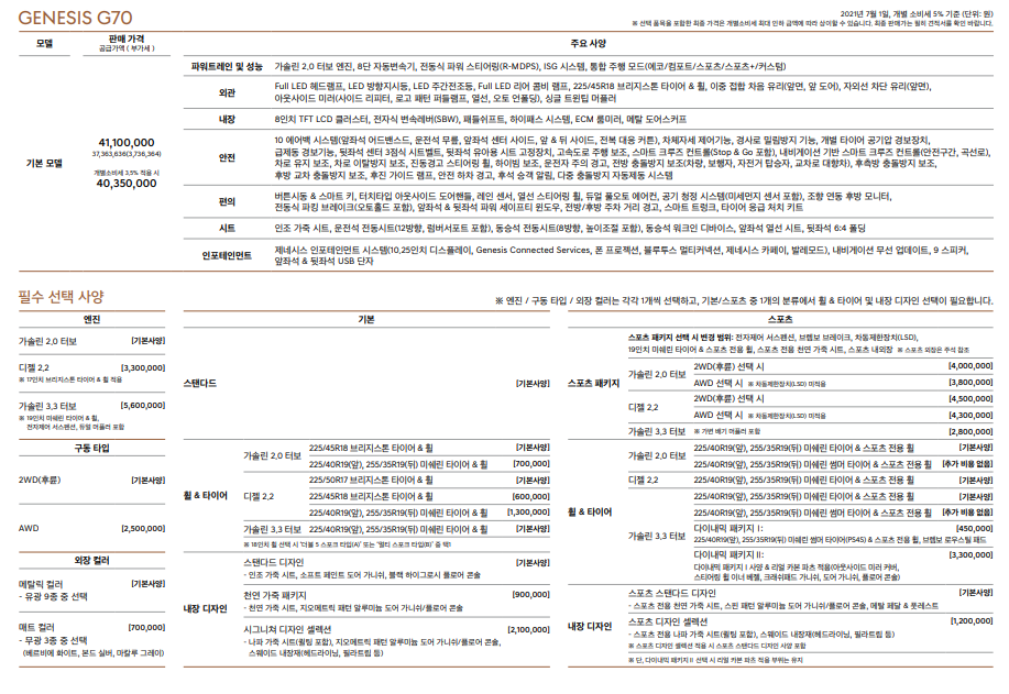 제네시스 g70 상세 (제네시스 g70 가격표 정리)