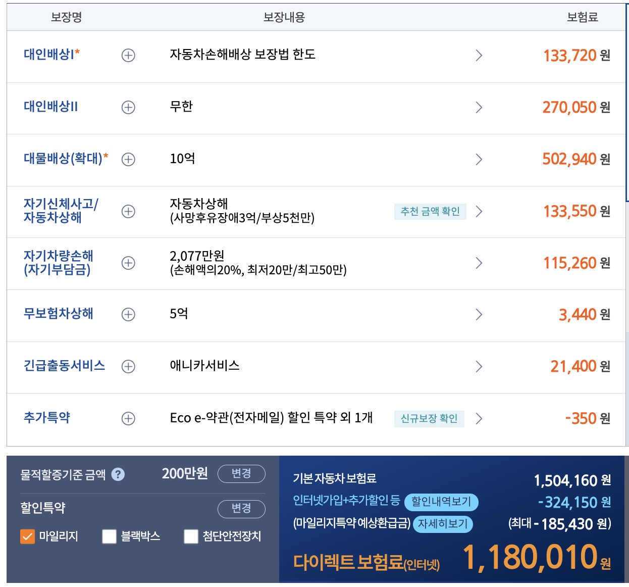 가입 조건이 변경되는 경우 또는 나이 및 차량에 따라 보험료가 달라질 수 있습니다.