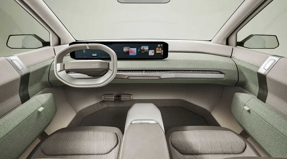 실내에는 천연재료가 사용되며, 천연소재 기반의 내장재, 재활용 페트병, 바이오 페인트, 재활용 어망 카펫 등 친환경 재료들이 적용될 예정입니다. 또한, 대형 파노라믹 선루프도 탑재될 것으로 예측됩니다.