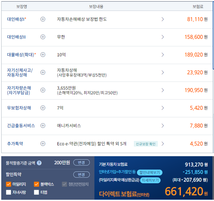 다이렉트 보험 할인 선택