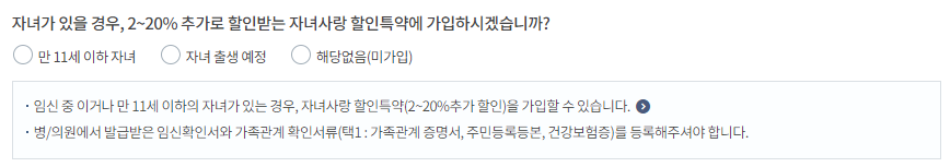 자녀할인도 받을 수 있습니다.자녀가 있는경우 2~20% 할인이 가능합니다.