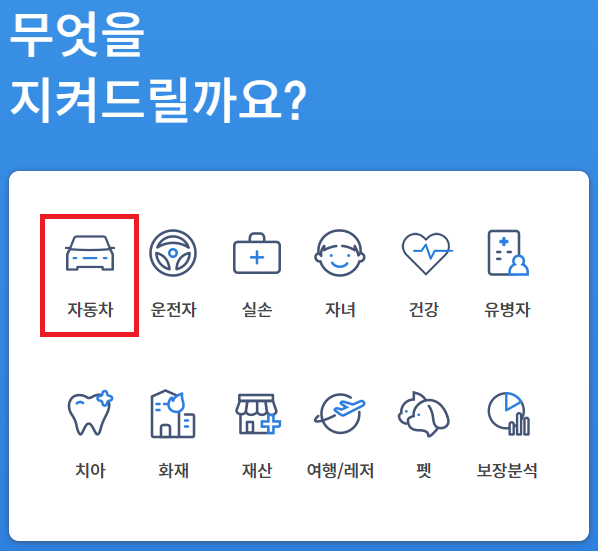 홈페이지 접속 후 자동차 보험을 클릭합니다.