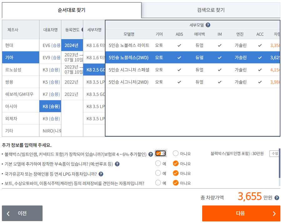 다이렉트 보험료 확인