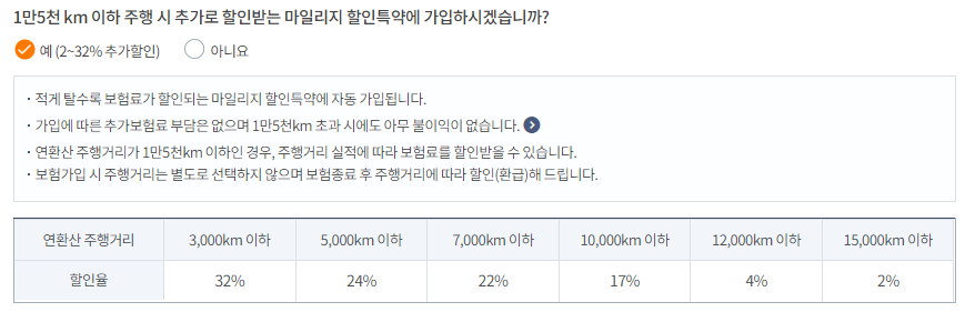 | 주행거리 | 할인율 |