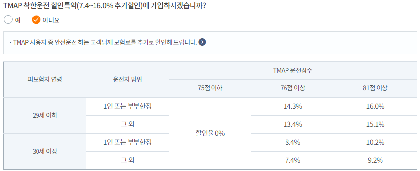 티맵 어플 운전자 점수가 높을수록 자동차보험료를 할인받을 수 있습니다. 29세 이하의 경우 최대 16%까지, 30세 이상의 경우 최대 10.2%까지 할인을 받을 수 있습니다.