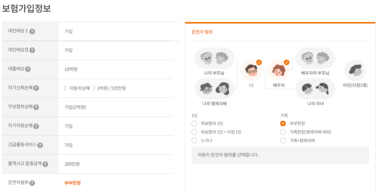 가입 조건이 변경되는 경우 또는 나이 및 차량에 따라 보험료가 달라질 수 있습니다.