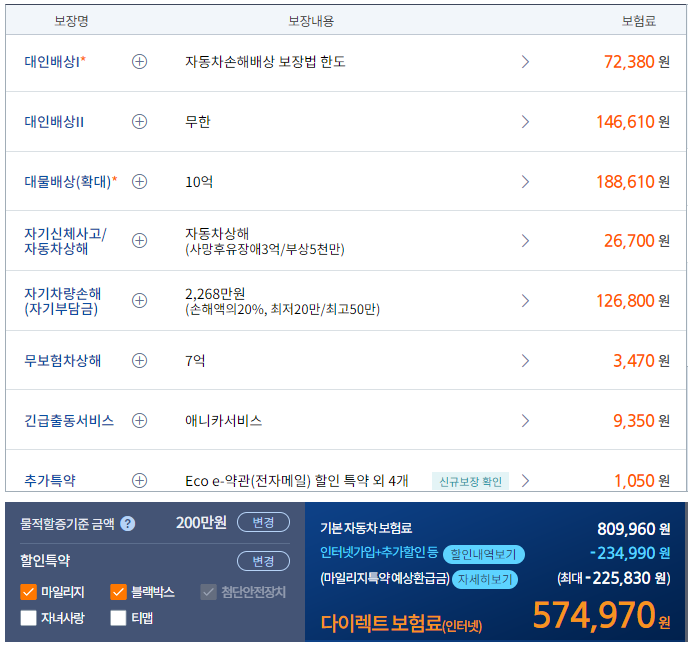 가입 조건이 변경되는 경우 또는 나이 및 차량에 따라 보험료가 달라질 수 있습니다.