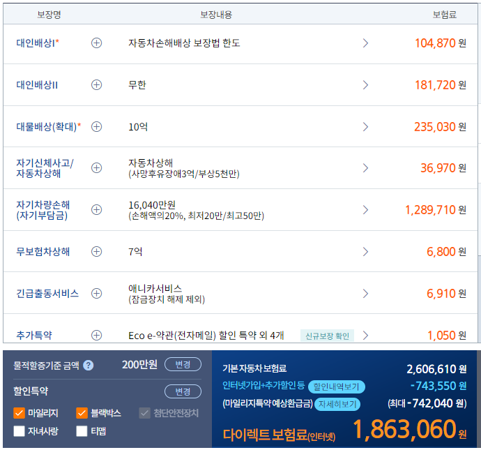 *기준: 삼성화재,BMW 7시리즈 740i X드라이브, 30대 초반, 운전자 부부 2명