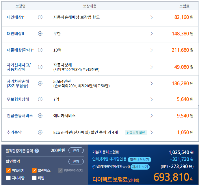 가입 조건이 변경되는 경우 또는 나이 및 차량에 따라 보험료가 달라질 수 있습니다.