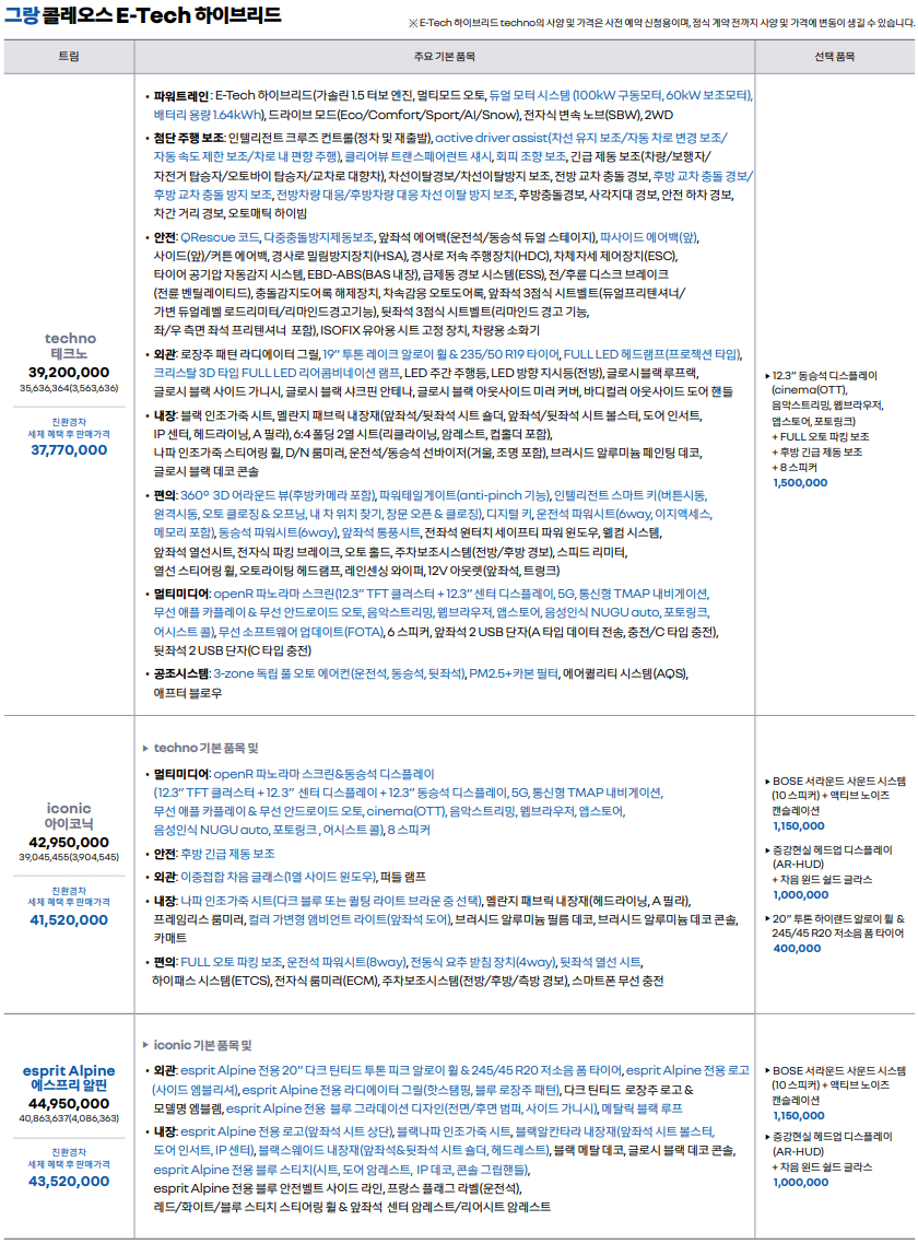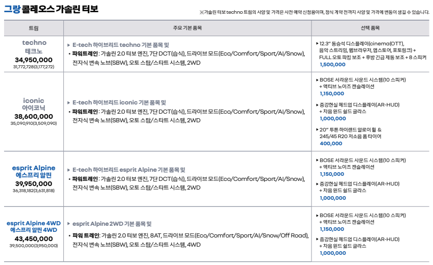 그랑 콜레오스 상세 (그랑 콜레오스 가격표 정리)