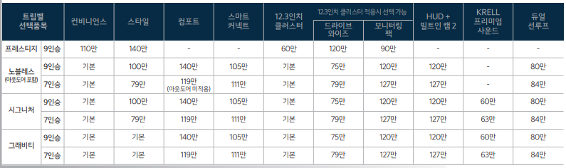 카니발 7인승 옵션표