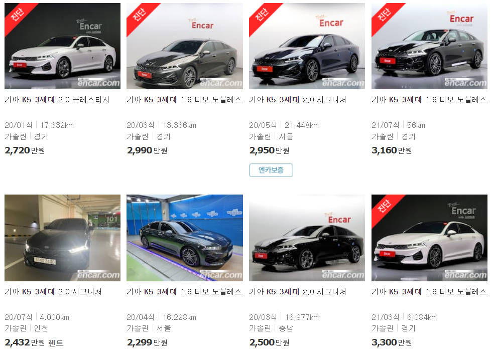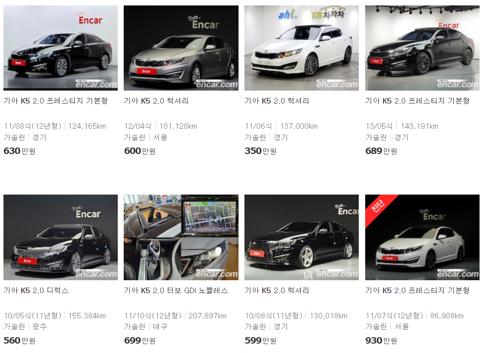 이상으로 k5 중고차 시세표 가격에 대해 알아보았습니다. 자동차 가격 기준은 작성일 기준입니다. 감사합니다.