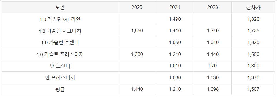 모델 | 2025 | 2024 | 2023 | 신차가 |