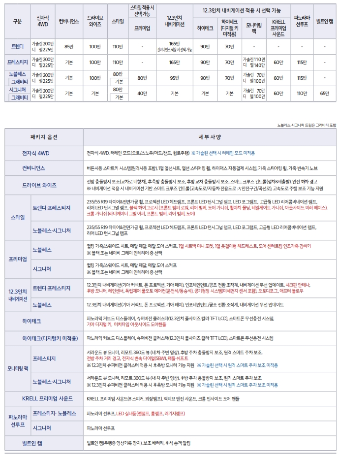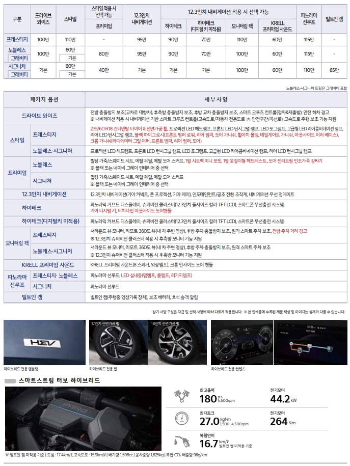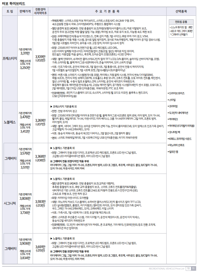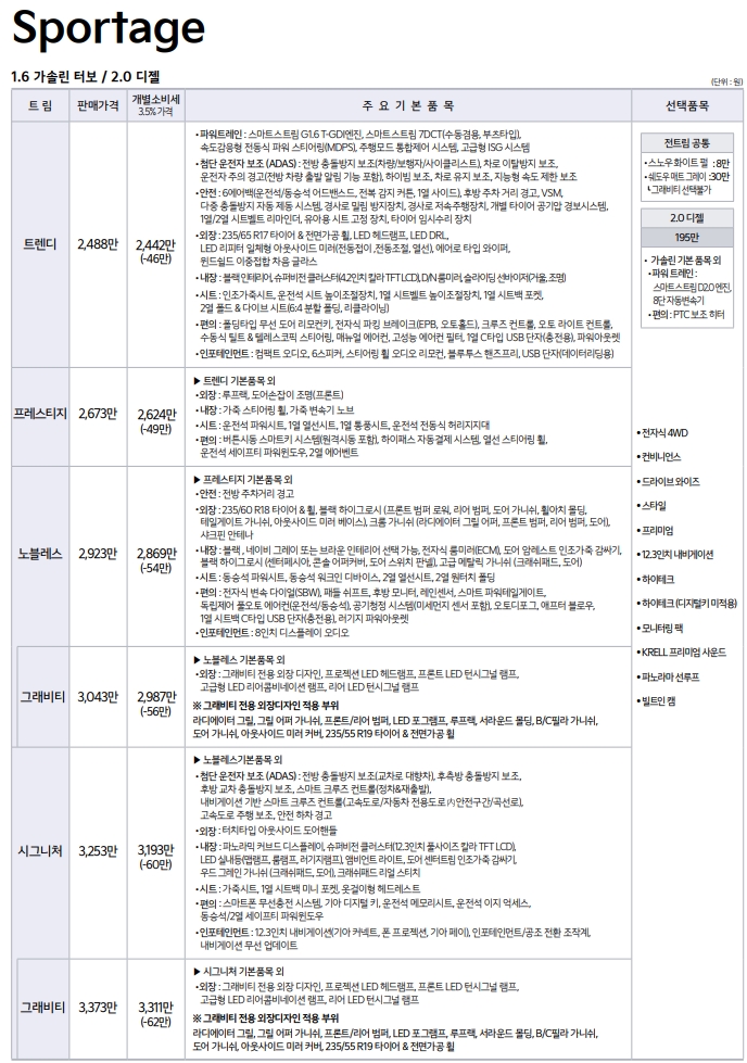 아래는 스포티지 터보 하이브리드 가격표입니다.