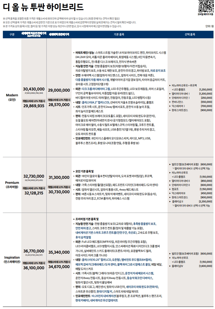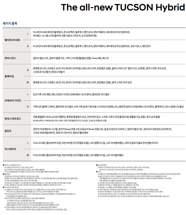 투싼 하이브리드 상세 (투싼 하이브리드 가격표 정리)