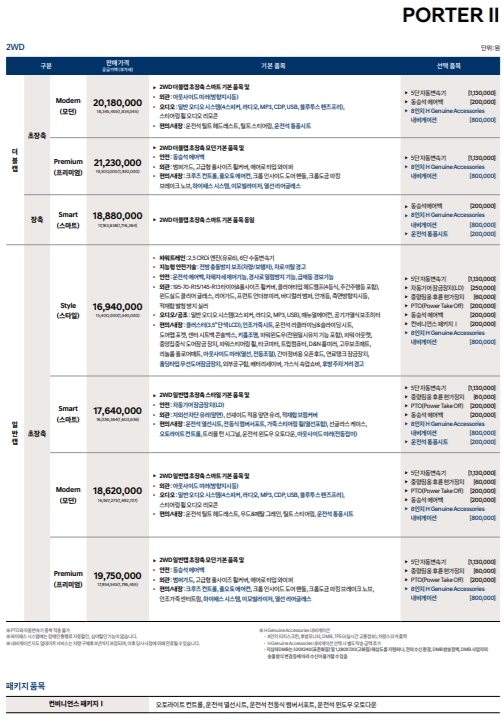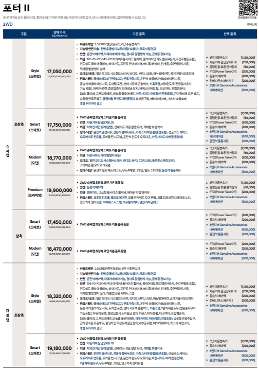포터2 자동차 가격표 정리