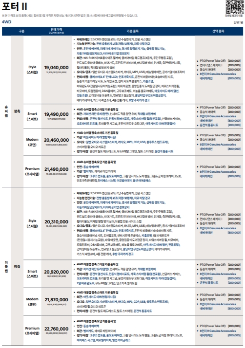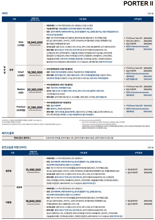 이상으로 포터2 자동차 가격표에 대해 알아보았습니다. 자동차 가격 기준은 작성일 기준입니다. 감사합니다.