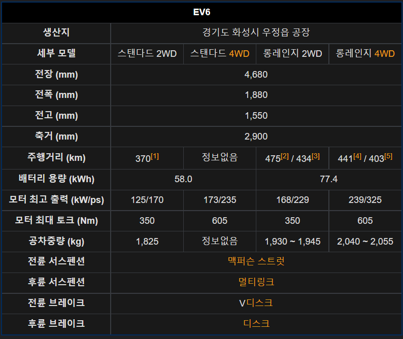 기아 EV6 상세 (기아 EV6 가격표 정리)