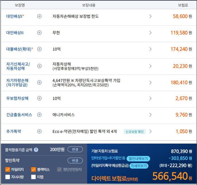 *기준: 삼성화재, 기아 K8 노블레스, 30대 초반, 운전자 부부 2인, 무사고 3년 이상